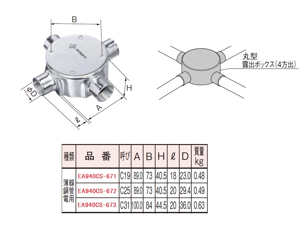 EA940CS-673 C31 丸形露出ボックス(4方出/薄鋼用) |