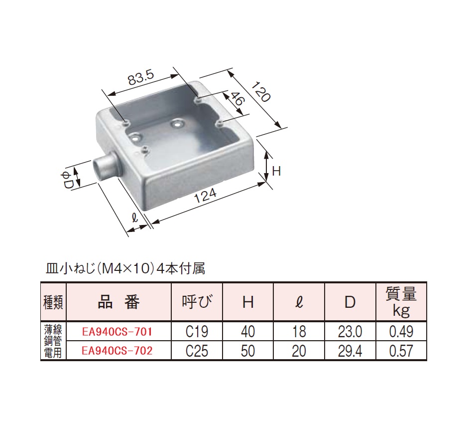 EA940CS-702 C25[2個用]露出スイッチボックス(1方出/薄鋼用) |
