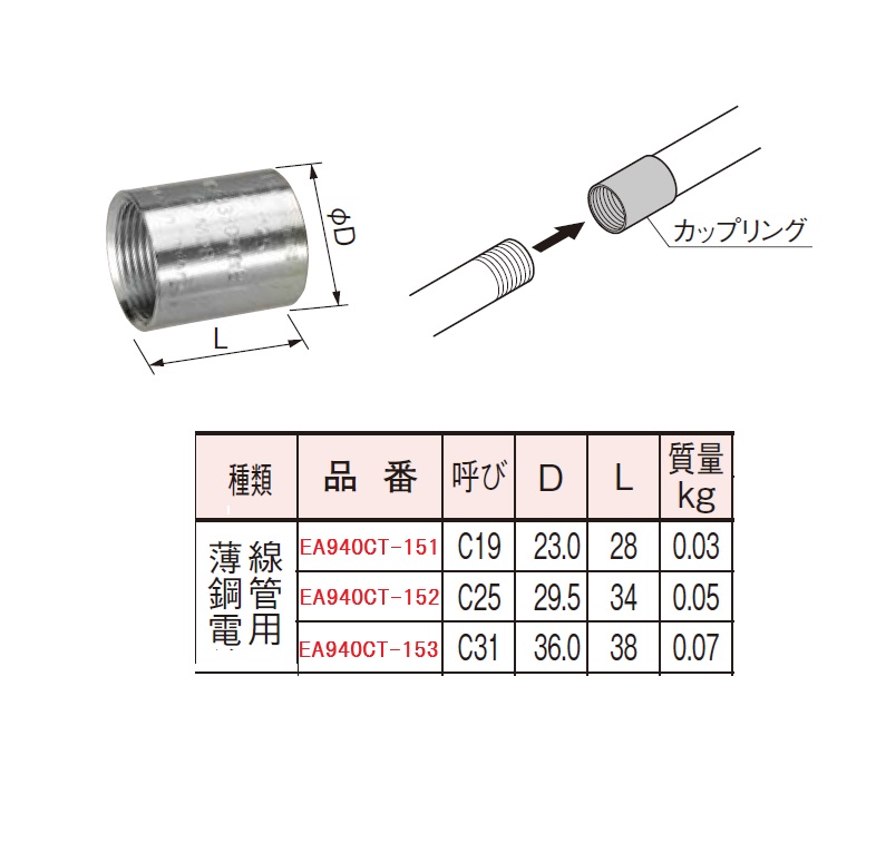 EA940CT-153 C31 電線管カップリング(薄鋼用) |