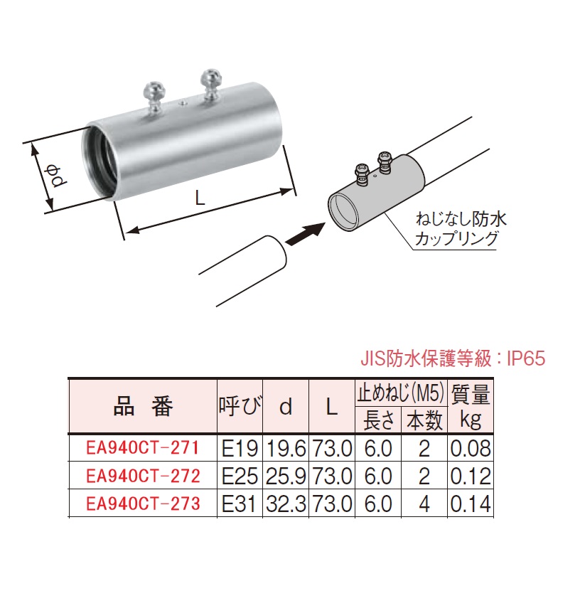 EA940CT-273 E31 [ステンレス製]ねじ無し防水カップリング |