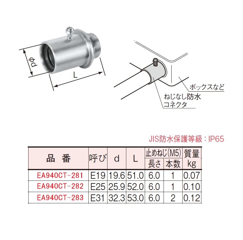 EA940CT-283 E31 [ステンレス製]ねじ無し防水コネクタ |