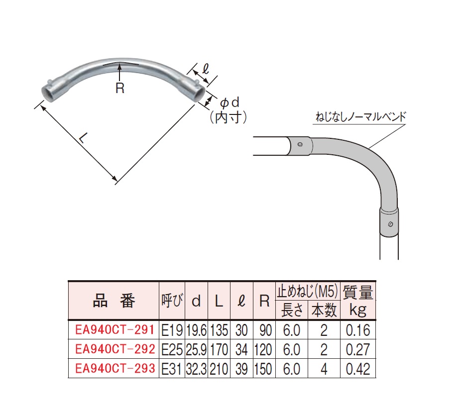 EA940CT-292 E25 [ステンレス製]ねじ無しノーマルベンド |