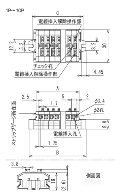 | 標準剥き線長 | 10mm | 端子間ピッチ | 5mm |