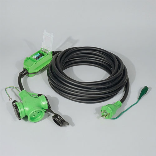 | お手持ちの防雨型の工具や延長コードにつなぐだけで、野外でも安心使用。 | |||