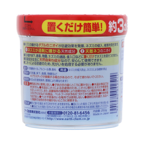 | ネズミが嫌がる天然由来成分のニオイで侵入被害を防ぐ、置くだけ簡単な忌避剤。 | |||
