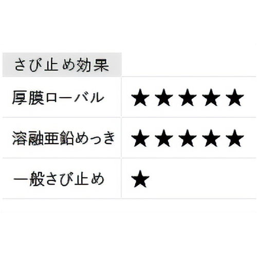 重ね塗り不要で、ローバルと同等のさび止め効果を発揮