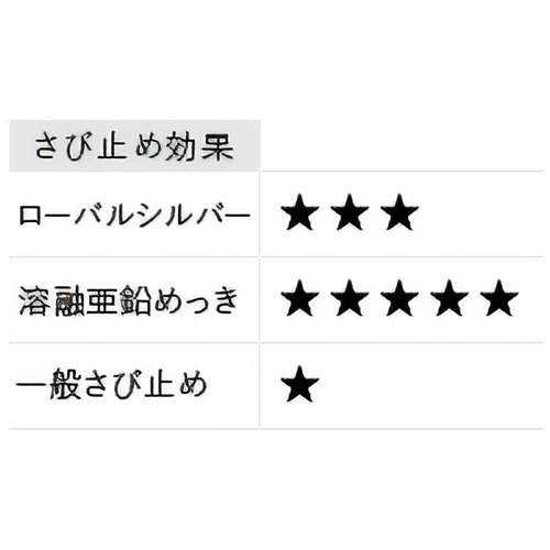 | 一般錆止め塗料に比べ強力な錆止め効果を持ち、シルバー色仕上げで亜鉛メッキ面への補修、上塗りに最適です。 | |||
