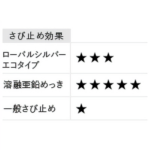 | ローバルシルバーエコタイプは3種の環境規制非該当に適合した環境対応型のめっき面用塗料です。乾燥時間も従来の環境対応製品から短縮され、工場内塗装や屋内塗装を始め塗装環境の管理が必要とされる様々な場所での管理負担軽減が期待でき、環境への配慮が必要な場所でも安心してご使用になれます。 | |||