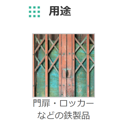 | メーカー | サンデーペイント | 用途 | 門扉、窓枠、鉄骨、シャッター、カラートタン屋根、トタン塀、とい、トタンサイディングなど鉄部・トタンの上塗り兼用さび止め |