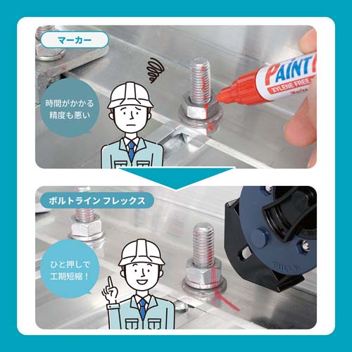 | ボルトに押し当てるだけで、まっすぐな合いマークをマーキングできます。 | |||
