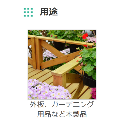 | 光沢のある透明な塗膜を形成し木材を日光・風雨から守ります。 | |||
