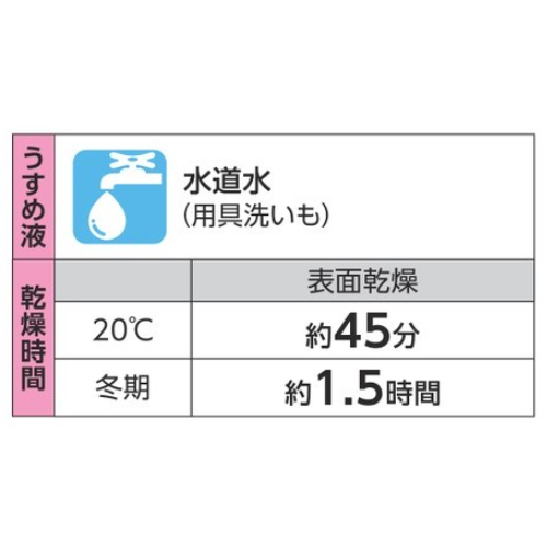 | 容量 | 1kg | 乾燥時間(表面乾燥) | 20℃:約45分 冬期:約1.5時間 |
