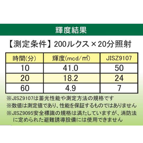 | 高輝度タイプの蓄光材を使用し、暗所での誘導表示に役立ちます | |||