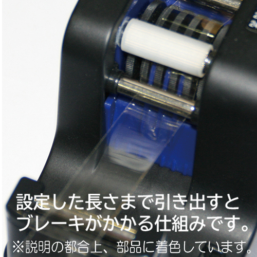 | 長さ設定 | 3~24cmの範囲で1cm単位の調節 | 推奨テープ | セロハンテープ、PPテープ、ストアテープ、マスキングテープ、ドラフティングテープ、フィラメントテープ、ガラスクロステープ、カプトンテープ等多くの粘着テープに対応 |
