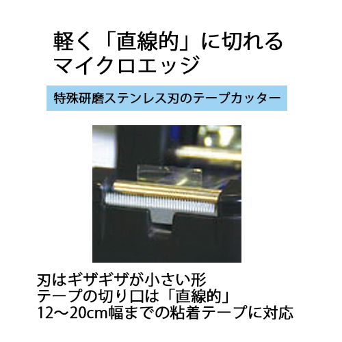 | 刃はギザギザが小さい形で、テープの切り口はきれいな直線的仕上がりになります。 | |||