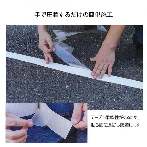 | 用途 | ・アスファルト面、コンクリート面への貼り付け ・駐車場の区画線、一般道路や工場構内の通行区分線 ・夜間や暗い所での安全表記に |
