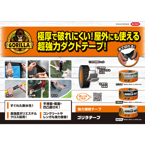 | 超強力&高強度&耐水 全天候型の、破れにくい超厚手補修テープ | |||