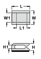 | サイズ(mm) | L:13.0、L1:8.0 W:9.5、W1:6.5 H:5.2、H1:2.8 |