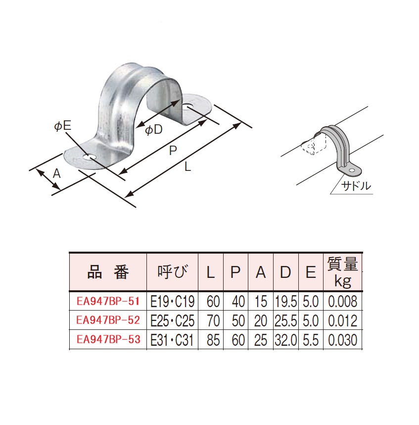 EA947BP-51 E19・C19 [ステンレス製]電線管サドル(10個入) |