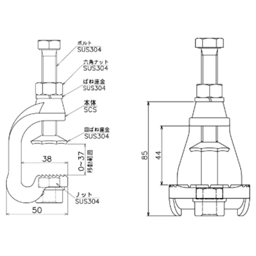 | クランプサイズ | 37㎜(最大) | ねじ径 | M12 |