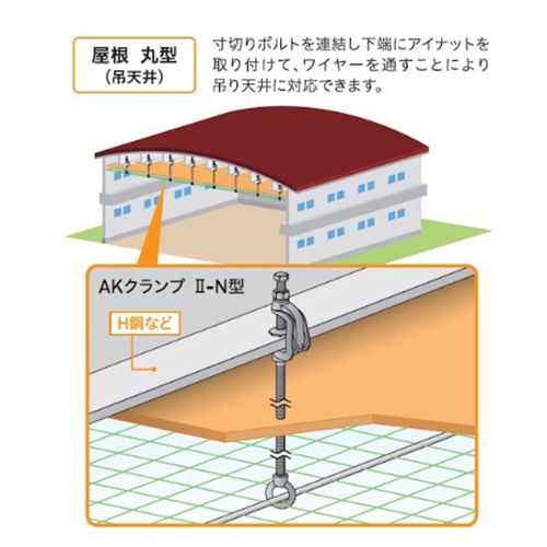 | H鋼などに取付け、吊金具としてやネット・ワイヤーの固定に | |||