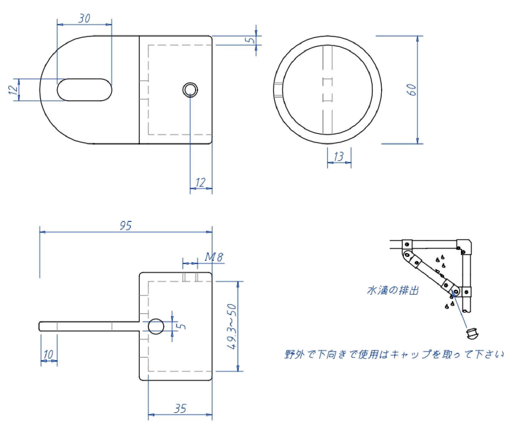 | 適用パイプ | 48.6mm | サイズ(W×D×H) | 60×60×95mm |