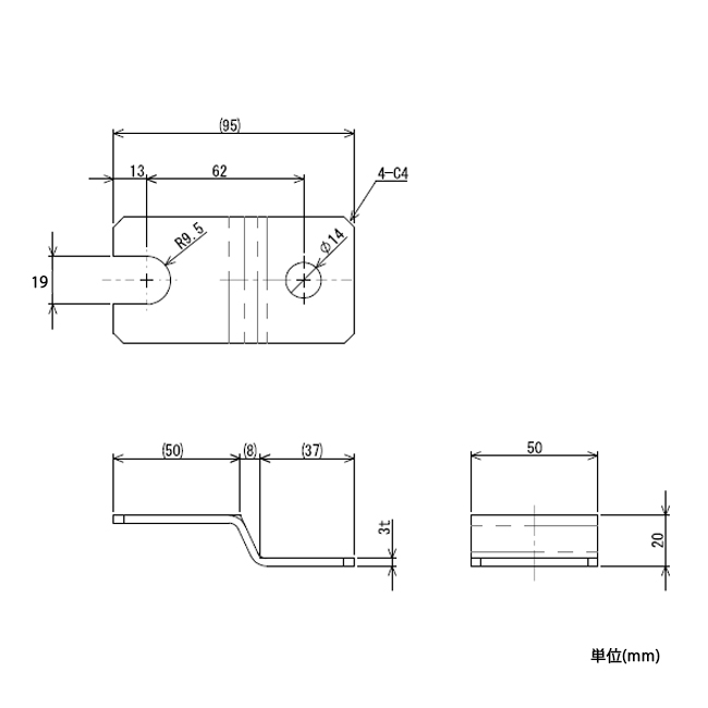 | 脚止め金具の開口部は各種ボルトの六角部の平径に合う寸法になっています。 | |||