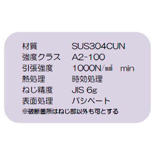 | クロモリ鋼製品(10.9)に相当するA2-100の強度で腐食環境においての置き換えが可能 | |||