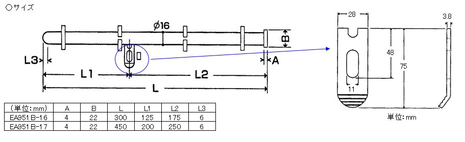 | EA951B-16 300mm 貫抜(ステンレス製) |