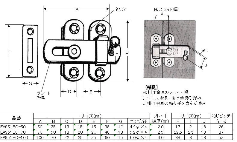 | EA951BC-70 70mm プレートラッチ(ステンレス製) |