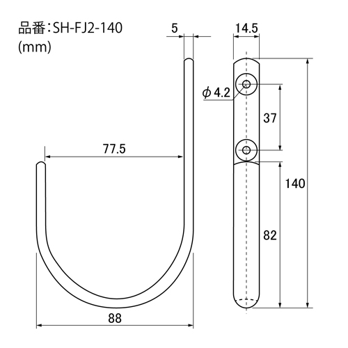品名 : 14x140mm 大型フック(ステンレス製)