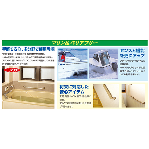 | 【主な使用例】 階段、玄関、トイレ、廊下などに 船などに設置して、ハンドレールとして |