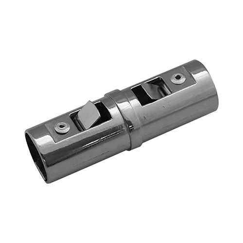 | 差し込むだけで板ばねが効いてがっちりロック! 2本のパイプをつないで長尺パイプに |