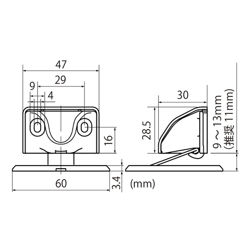 | 対応範囲 | 9~13mm(推奨11mm) | サイズ | 本体:47(W)×30(D)×28.5(H)mm プレート:φ60mm |
