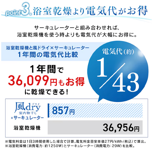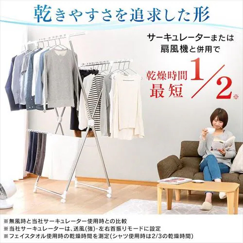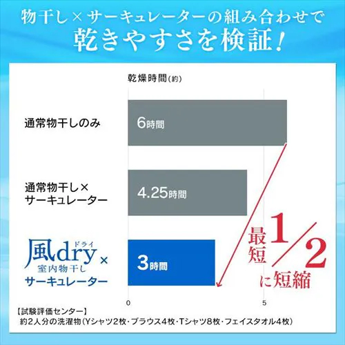 | 扇風機やサーキュレーターを併用することで、乾燥時間が短縮されます(※アイリスオーヤマ社内基準に基づく)。 | |||
