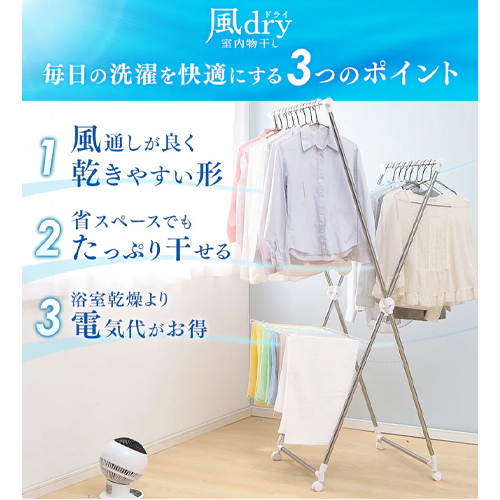 | 風の通りを考え、乾きやすさを追求した室内物干しです。 | |||