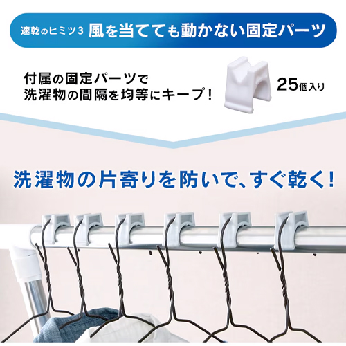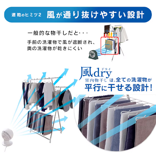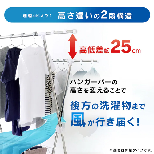 | ハンガーの高さを変えることで、後方部分にも風が通り抜けやすい設計です。 | |||