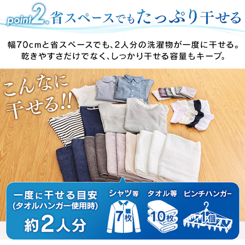 | 干せる目安 | シャツ7枚、タオル10枚、 ピンチハンガー1個 |
