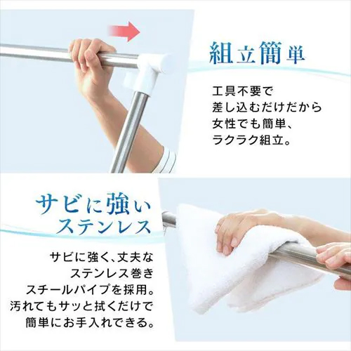 | 耐荷重 | 全体:11kg、 竿1本あたり:3kg、 タオルハンガー1本あたり:0.5kg |
