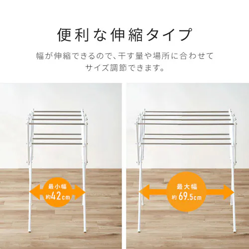 | 幅が伸縮できるので、干す量や干す場所に合わせてお好みのサイズに調節できます。 | |||