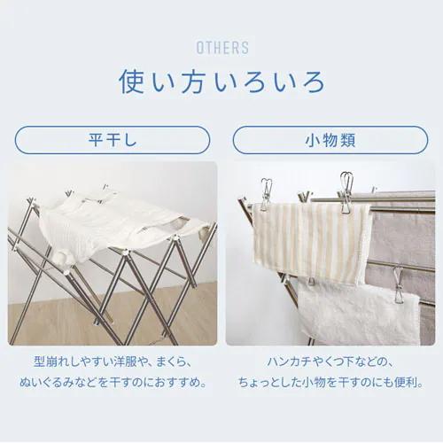 | 型崩れしやすい洋服や、まくら、ぬいぐるみなどの平干しにも。 | |||