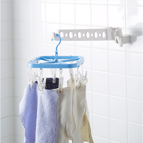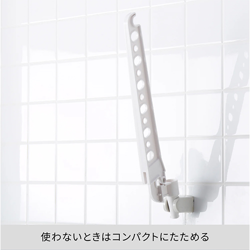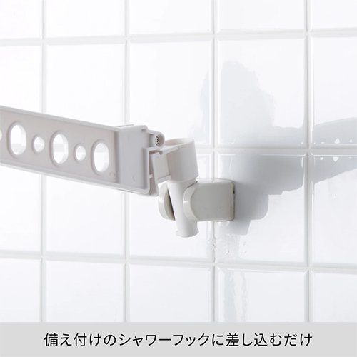 | 備え付けのシャワーフックに差し込むだけで物干しになる浴室用ハンガー | |||