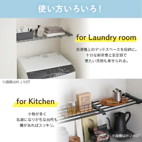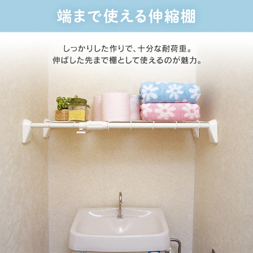| ねじや釘を使わずに壁にしっかりと固定できる伸縮棚です。 | |||
