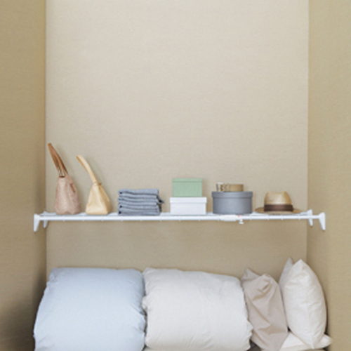 | ねじや釘を使わずに壁にしっかりと固定できる伸縮棚です。 | |||