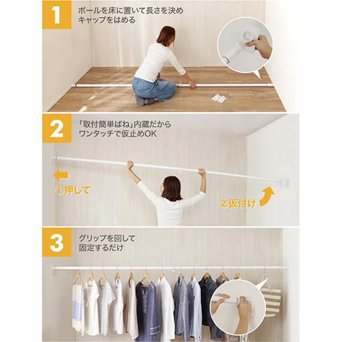 | 取付簡単、しっかり圧着する二重ばね構造の極太突っ張り棒 | |||