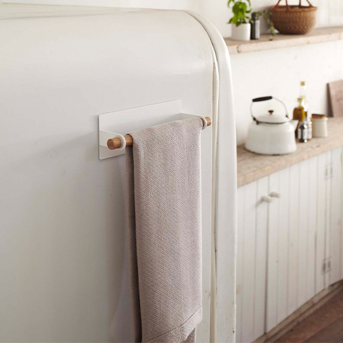 スチールと木の組み合わせが美しいマグネットキッチンタオルハンガー