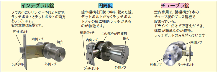 | 円筒錠・インテグラル錠の交換には対応しておりません。 | |||