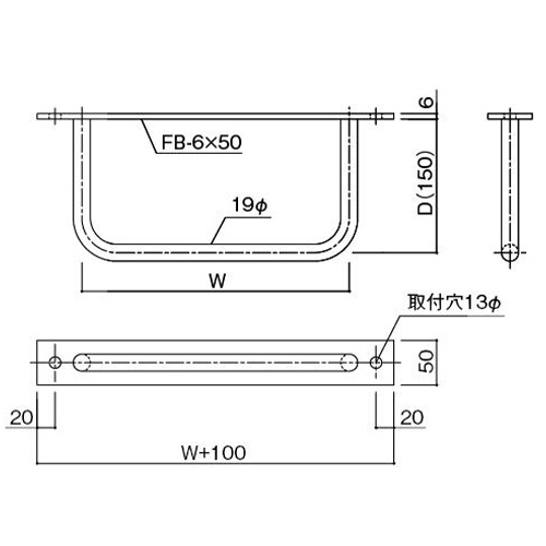 | ベースサイズ(幅×長さ) | 50×400mm | 取付穴径 | φ13mm |