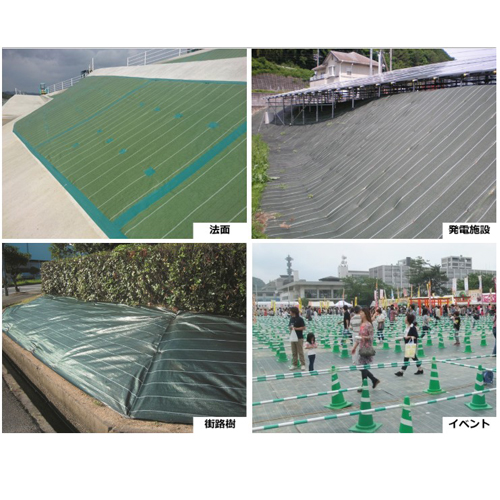 | 耕作放棄地、雑草抑制、軟弱地盤の補強、未整備地等の防塵、防砂対策などに最適。 | |||