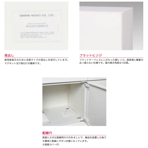 底面に大きな配線用の穴があることで、製品を設置した後でも簡単に配線しやすい仕様になっています。(底板カバー付) | |||